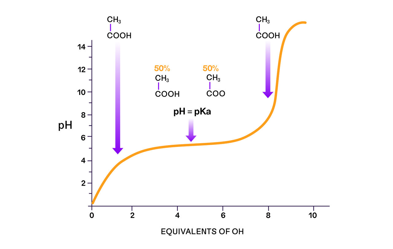 The relationship between pH and pKa is described by the Henderson–Hasselbalch equation: