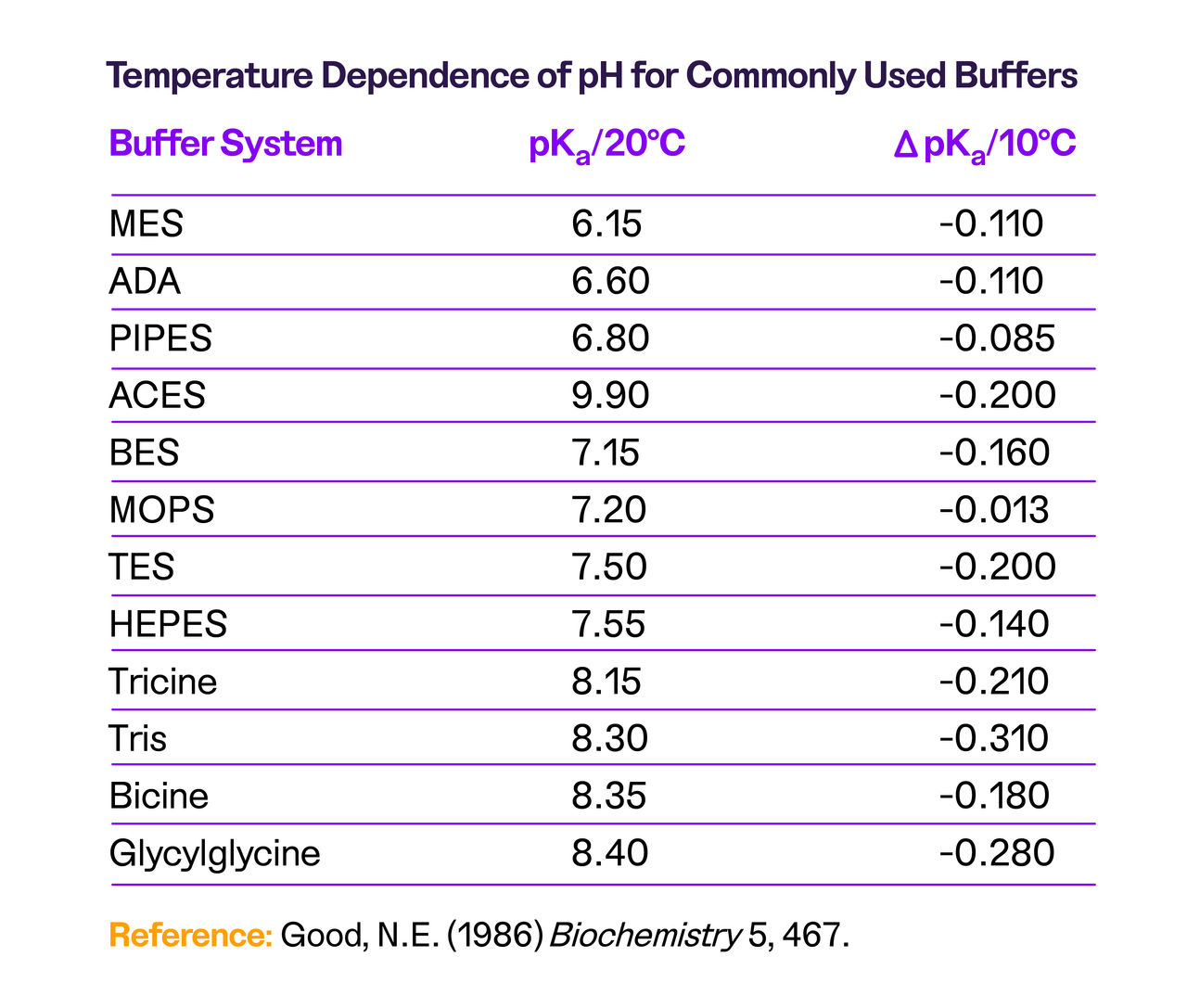 Temperature changes can affect the pKa of buffers. An increase in water temperature leads to the dissociation of H+ concentration and a decrease in the pH of most aqueous biological buffers. The pKa of biological buffers decreases as their concentration and temperature increase. Another point to remember is that the buffering capacity of biological buffers decreases as the temperature increases. Therefore, measuring the pH of buffers at working concentrations and temperatures is critical for optimal buffering.